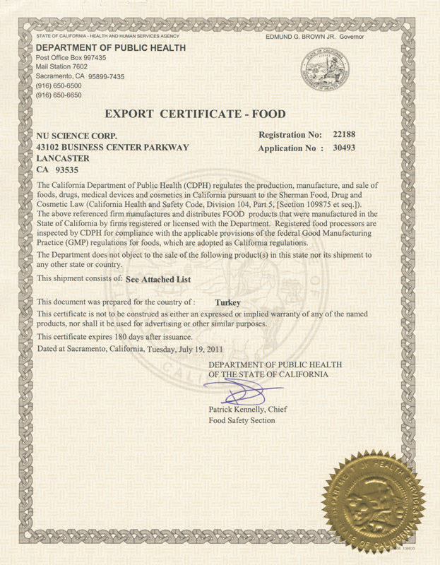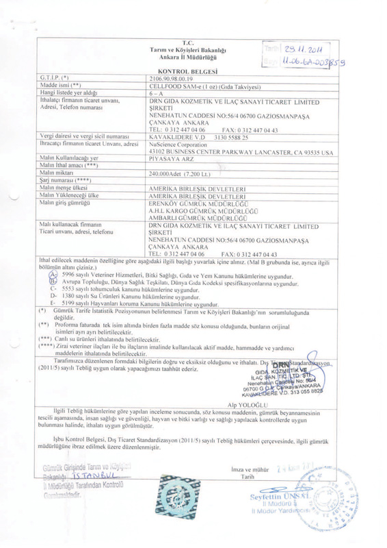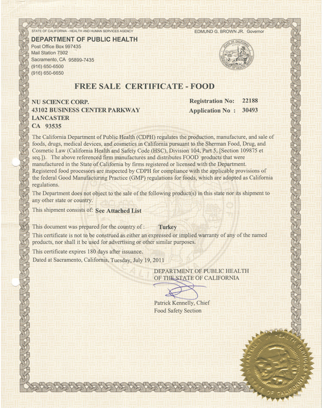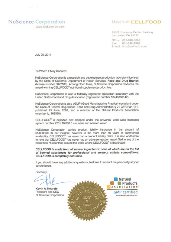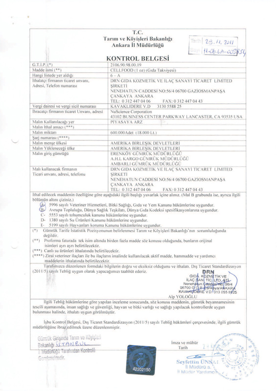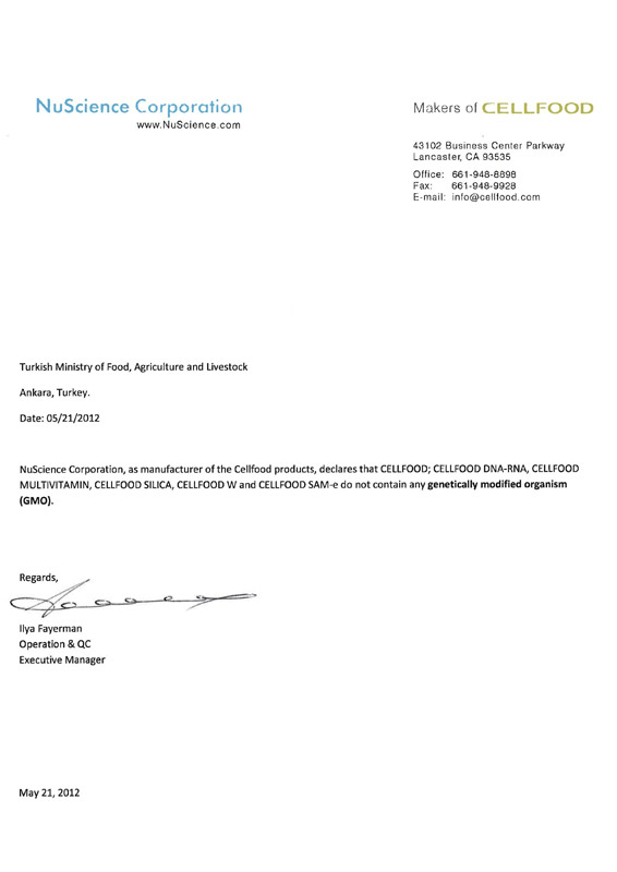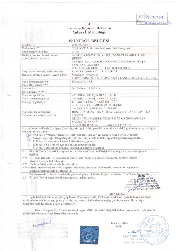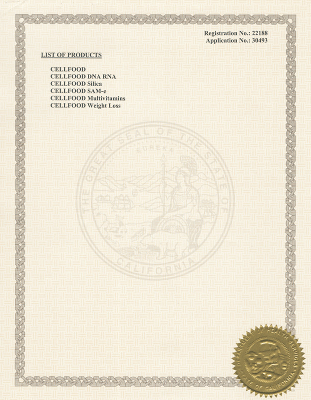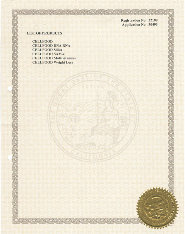 FDA CELLFFOOD Serbest Satış Belgesi 2.Sayfa
